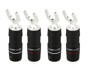 The ETI-Research Kryo Spade Connector is made from Tellurium Copper and Silver Plated for not only superior conductivity but long-lasting durability. The housing is made from Brass for greater vibration damping and high EMI/RF noise rejection.