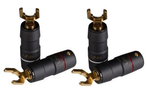 The ETI-Research Copper LINK Spade is contoured to allow easy insertion on both Speakers and the Back of amplifiers.