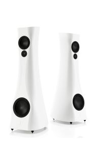 The speaker cabinet has no parallel walls. Most of the walls are curved so the standing waves in the cabinet are spread out, minimized in magnitude. In addition, the curved shape aid in rigidity. The combination of the heavy and rigid marble-based material, curved shapes and internal bracing, suppresses the cabinets’ inherent resonances to almost non-existent levels. The drivers have everything to support them to perform their absolute best.
