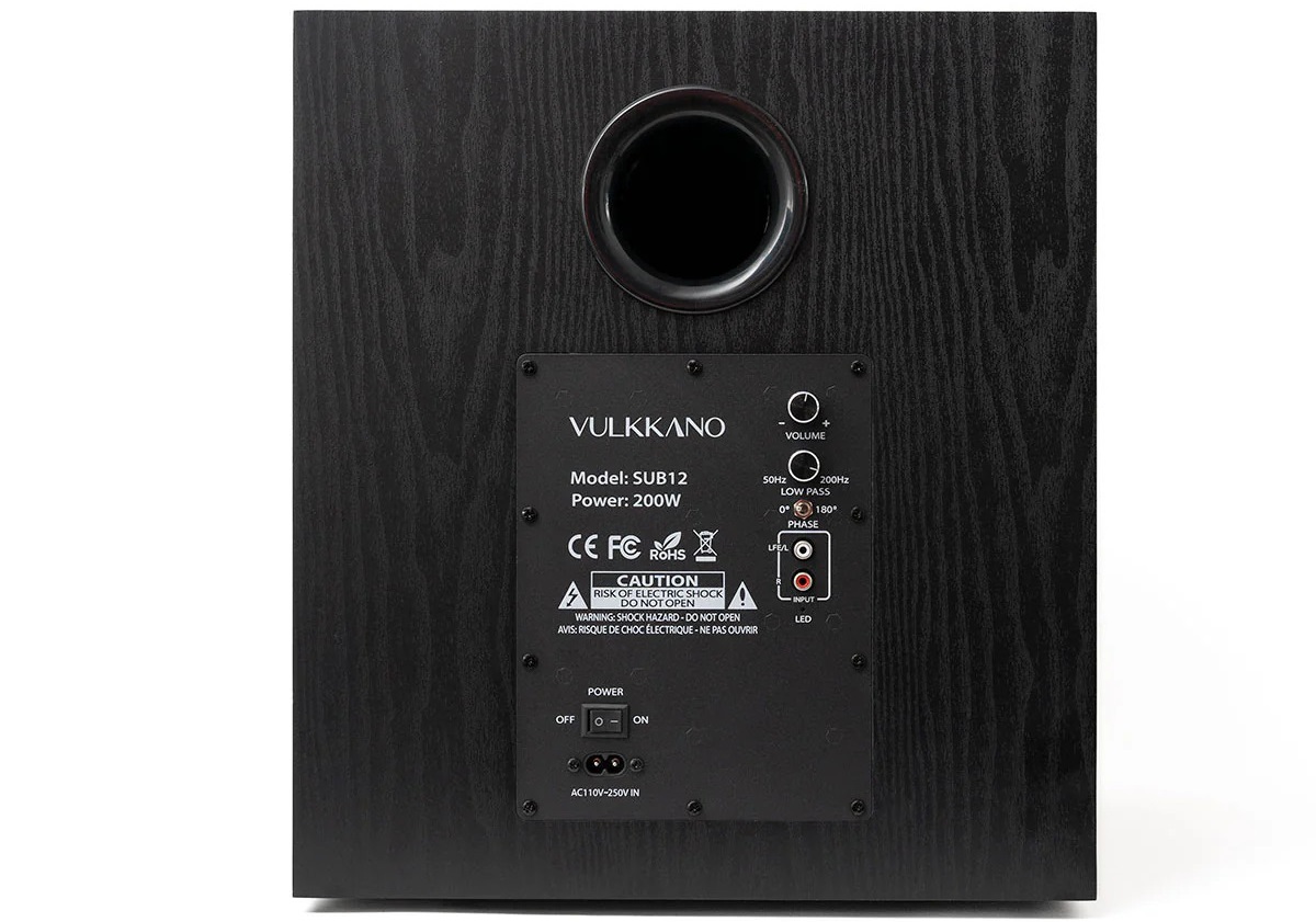Το Vulkkano SUB12 ειναι ενεργο subwoofer με 12" woofer και ενισχυτη 200 wrms/400 wmax. Διαθετει ρυθμιζομενο low-pass crossover απο 50Hz-200Hz, καθως και ρυθμιση φασης 0-180. Διαθετει ασυρματη συνδεση μεσω Bluetooth. Καταλληλο για χρηση σε συστηματα hifi ή home cinema.