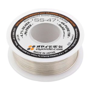 Η Oyaide S47 100gr audio grade solder βαρους 50gr ειναι μια ασημοκολληση φτιαγμενη απο την Oyaide με δικη της συνταγη (4,7% περιεκτικοτητα σε ασημι καθαροτητας 5N). Καρουλι 50 γραμμαριων.