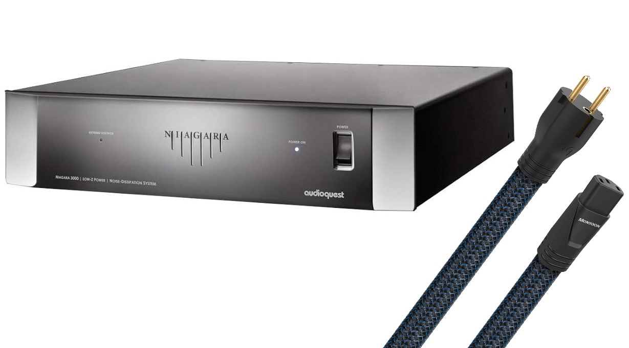 To AudioQuest Niagara 3000 ειναι ενα πολυμπριζο/φιλτρο/προστατευτικο/AC διαχειριστης και αποθηκη ρευματος για αποδοση οταν απαιτειται (current boost ability). Οσο υπαρχει αποθεμα δινεται μαζι και AudioQuest Monsoon Power Cable 2 μετρων (αξιας 679?).