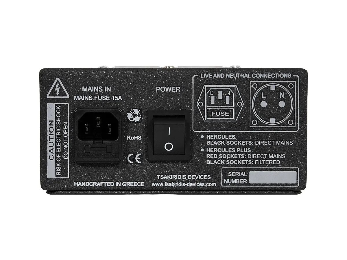 The filter circuit is designed to have the minimum effect possible to the power lines. Hercules Plus provides 2 direct mains sockets and 8 filtered sockets. The direct sockets are there if you don‘t want your amplifiers to be connected through the filter circuit. High quality AWG 14 (2.5mm2) copper cables are used for the wiring. Soft start circuit is available upon request.