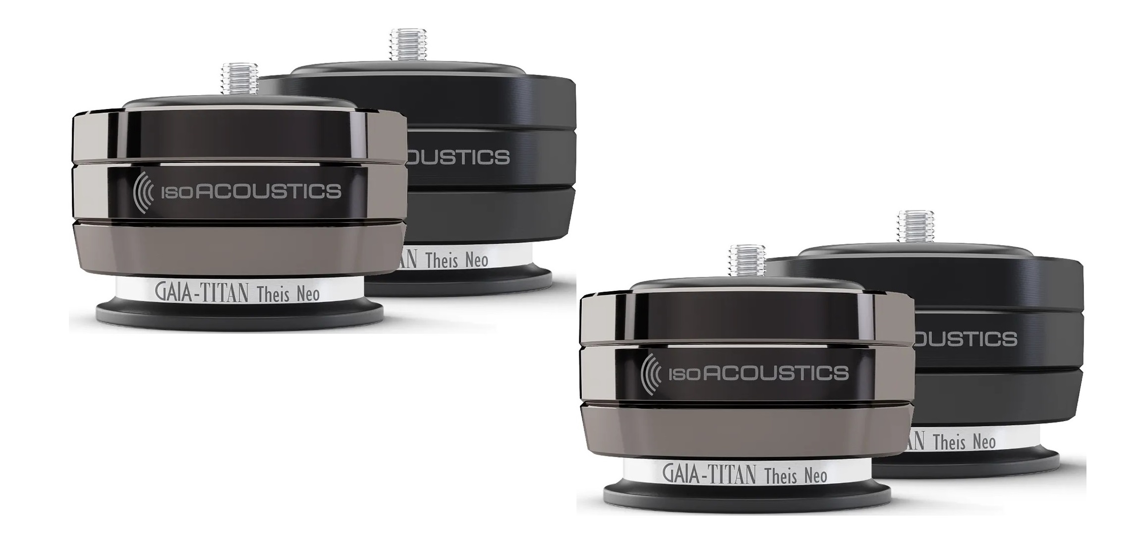 Τα IsoAcoustics Gaia-Titan Theis Neo ειναι σετ 4 παρεμβυσματων, φορτιου 36.25 kg το καθενα (145 kg συνολικα για τα 4). Αντικαθιστουν τα εργοστασιακα ποδαρακια ωστε να απορροφουν ανεπιθυμητες δονησεις, βελτιωνοντας συνηθως το ηχητικο αποτελεσμα.