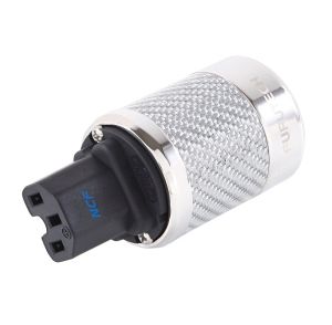 A multilayer nonmagnetic stainless steel and silver plated carbon fiber shell incorporates a special damping and insulating acetal copolymer. Furutech settled on stainless and silver plated carbon fiber for the outer housing after extensive listening sessions with Japanese industry figures and audiophiles.