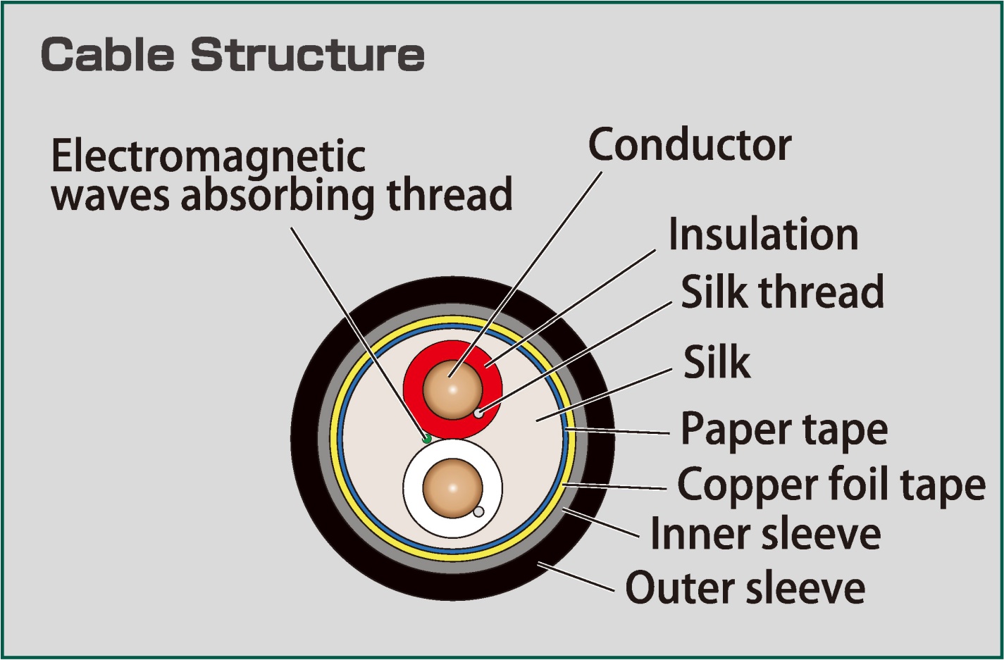 - Conductor: 7N Cu D.U.C.C stress-free (0.37 mm × 18 strands, 1.9 sq mm, AWG14) × 2