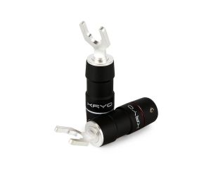 The ETI-Research Kryo Spade Connector is made from Tellurium Copper and Silver Plated for not only superior conductivity but long-lasting durability. The housing is made from Brass for greater vibration damping and high EMI/RF noise rejection.