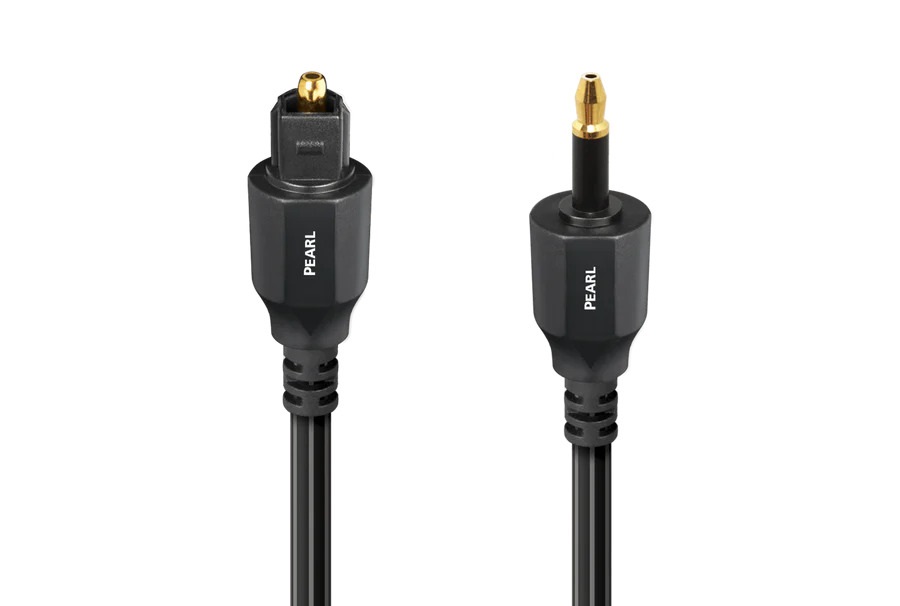 To AudioQuest Pearl > 3.5mm Mini-M ειναι ενα καλωδιο οπτικης ινας (optical fibre) τερματισμενο με βυσματα Full Size στην μια πλευρα και 3.5mm Mini-M στην αλλη πλευρα.