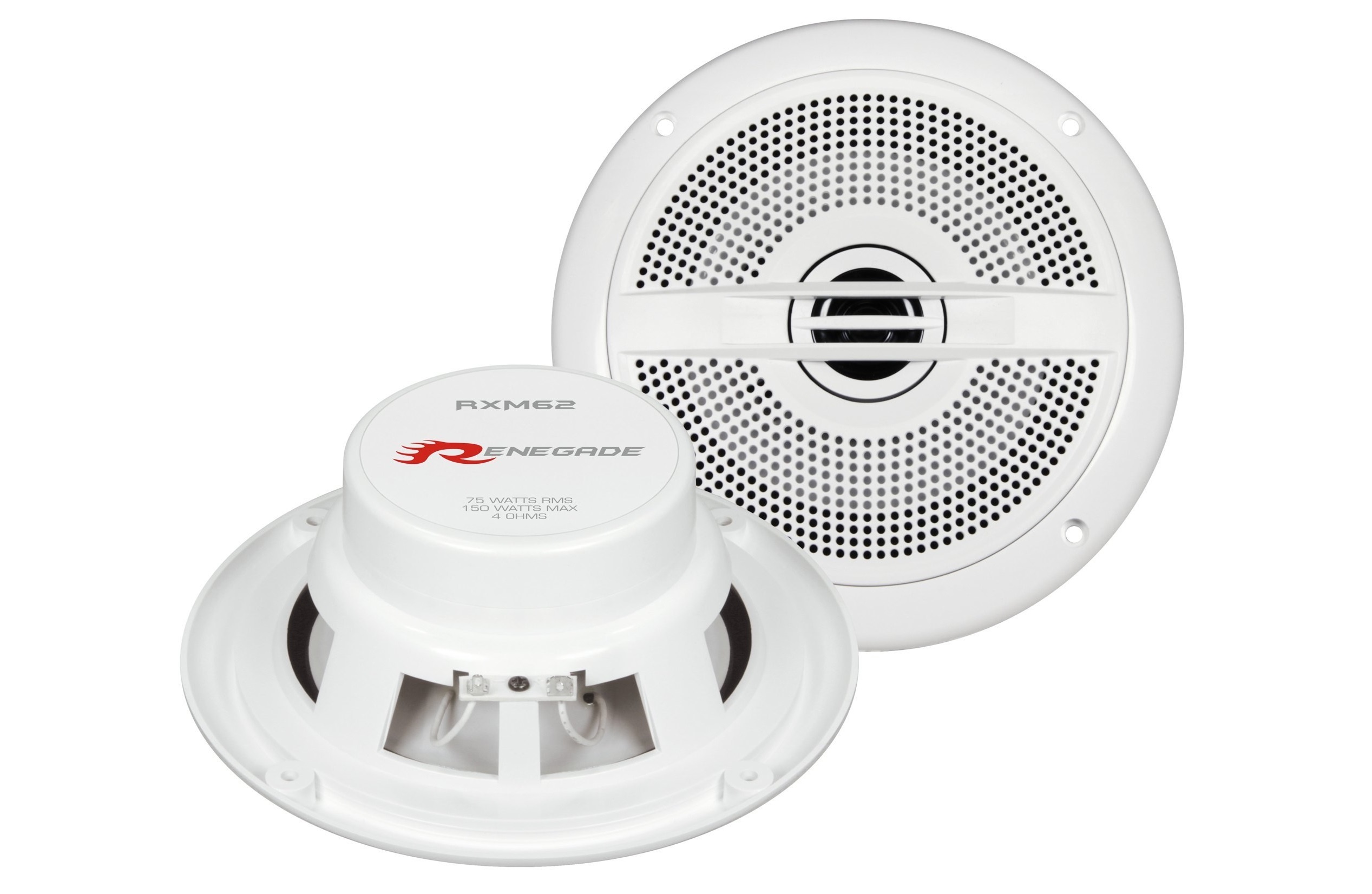 Τα Renegade RXM-62 ειναι ζευγος αδιαβροχων ηχειων θαλασσης, καταλληλα για σκαφη η περιβαλλοντα με υψηλη υγρασια. ΕΙναι 2 δρομων με woofer 6.5" και tweeter 1". Διαχειριση ισχυος 100 wrms - 200 wmax.