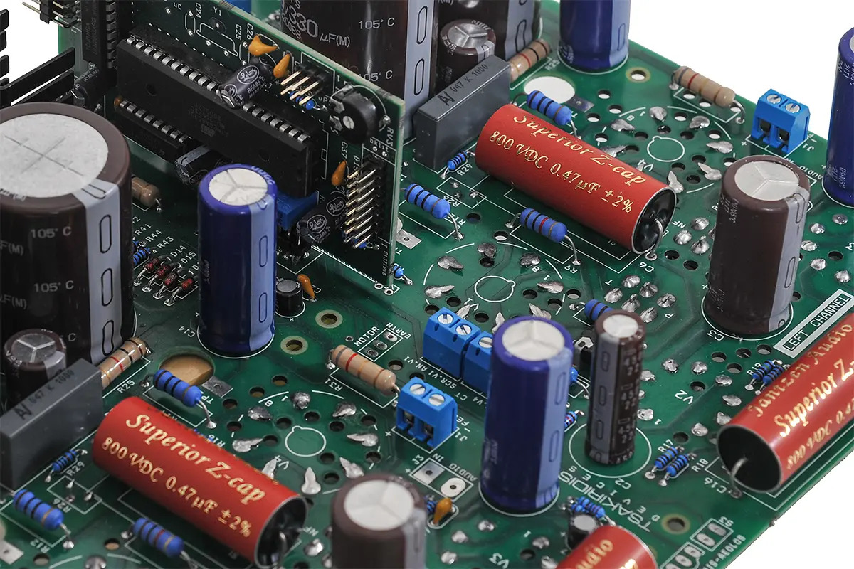 Carefully selected values and types of the electronic components contribute to the reliable circuits operation and the high sound quality of the amplifier. Metal film power resistors and Jantzen superior-Z signal capacitors are used in Artemis Ultra. The meticulous PCB design ensures excellent behavior in SNR, distortion and channel separation.
