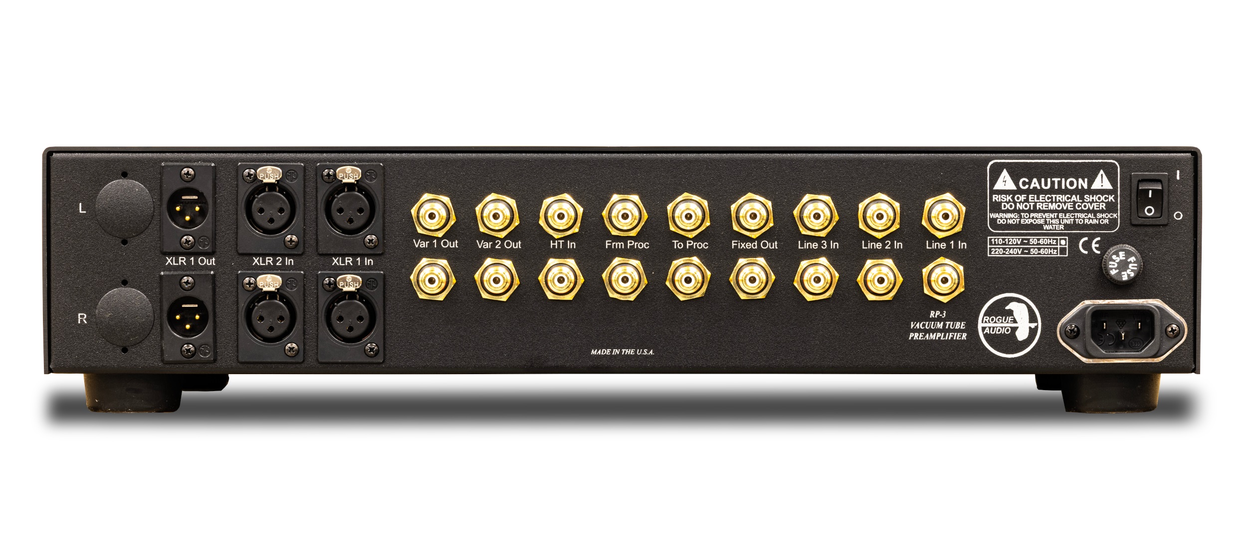 Ο Rogue Audio RP-3 ειναι ενας τηλεχειριζομενος full balanced προενισχυτης 6 εισοδων (3x line RCA, 2x line XLR, 1x Home Theater RCA, 1x from Processor RCA), 3 εξοδων (1x variable XLR, 2x variable RCA, 1x to Processor RCA, 1x fixed). Frequency response: 5Hz – 100KHz. Made in USA.