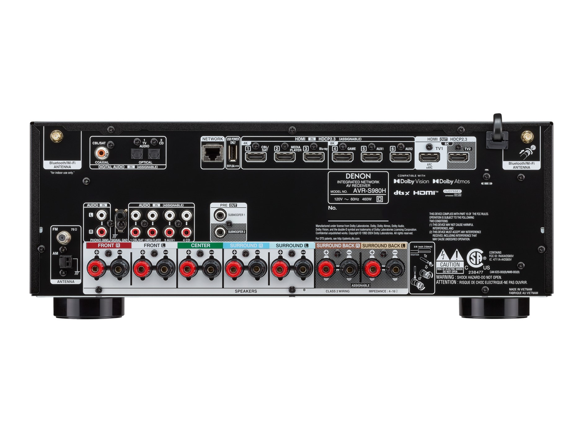 Ο Denon AVR-S980H ειναι ενας πολυκαναλος (7.2ch, 90watts/ch) δικτυακός 8Κ ραδιοενισχυτής home cinema. Διαθετει USB, Wi-Fi και Bluetooth. Υποστηριζει Dolby Atmos και DTS:X, Alexa, HDR10, HDR10+, Dynamic HDR και Dolby Vision.